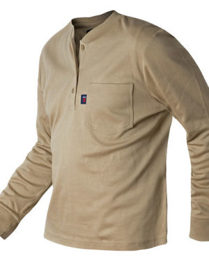 Stay safe from fire and arc flash exposure while you work hard, with this superior flame resistant Henley . Certified with a high arc rating of 13 (CAT2), this cotton knit work shirt is a cut above the rest in the industry . It won’t ignite nor will it continue burning if exposed to flames . That should give you peace of mind so you can focus on your job.